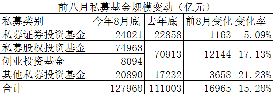 前8月私募基金規模大增1.7萬億 總規模達12.80萬億